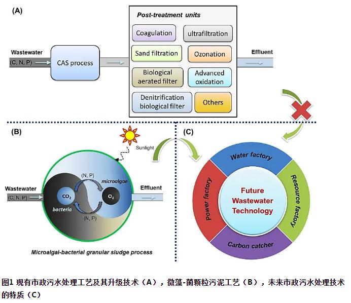 未来市政污水处理技术的发展方向一直为环境研究领域的热点和焦点。未来市政污水处理技术应具备怎样的特质?目前普遍采用的污水处理技术(如活性污泥法)离这些特质有多远?近日,来自新加坡南洋理工大学的科研团队针对上述问题进行了探讨,并从理论和已有研究结果出发,以近年来发展迅速的微藻-菌颗粒污泥工艺为例,讨论了其作为未来市政污水处理技术的可行性。
