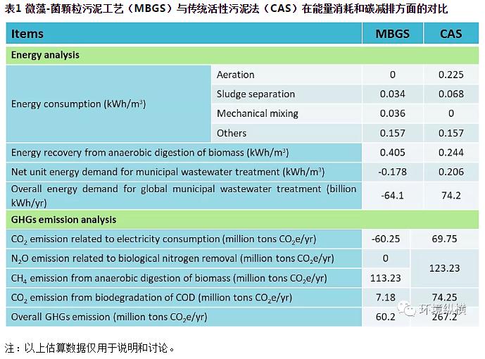 随着全球气候变化形势的日趋严峻,温室气体排放对全球变暖的作用得到世界各国的普遍关注。据估算,若市政污水处理厂采用以活性污泥法为核心工艺,其每年可贡献全球碳排放2.672亿吨CO2e(表1)。若采用微藻-菌颗粒污泥工艺,市政污水处理过程的碳排放将会大大降低,减排效果可达77%左右。另外,随着碳交易在世界各国的普遍实施,碳排放将会成为未来污水处理厂不可忽视的潜在运行成本。