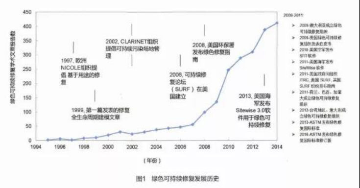 绿色可持续修复的前身是欧盟政府间修复组织于2002年提出的“可持续污染场地管理(Sustainable Land Management)”概念。这一概念以风险管理为核心,强调修复过程中社会、经济、环境影响的全面优化。在21世纪初,欧洲学者和工业团体对可持续修复进行了大量的研究并推动其发展。2006年左右,在美国建立的可持续论坛(SURF)推动了绿色可持续修复在该国的大力发展。2007年美国总统发布了推动联邦政府在各项业务中积极采取可持续手段的行政指令,美国环保署相应地在2008年发布了绿色修复的指导性文件,提倡在污染场地修复的过程中必须全面减少修复伴生的负面环境影响,包括对大气污染、水资源循环、生态多样性、土壤营养缺失等的影响。此后,美国的多个联邦机构及州政府相继颁布了鼓励绿色修复的政策和指导文件。